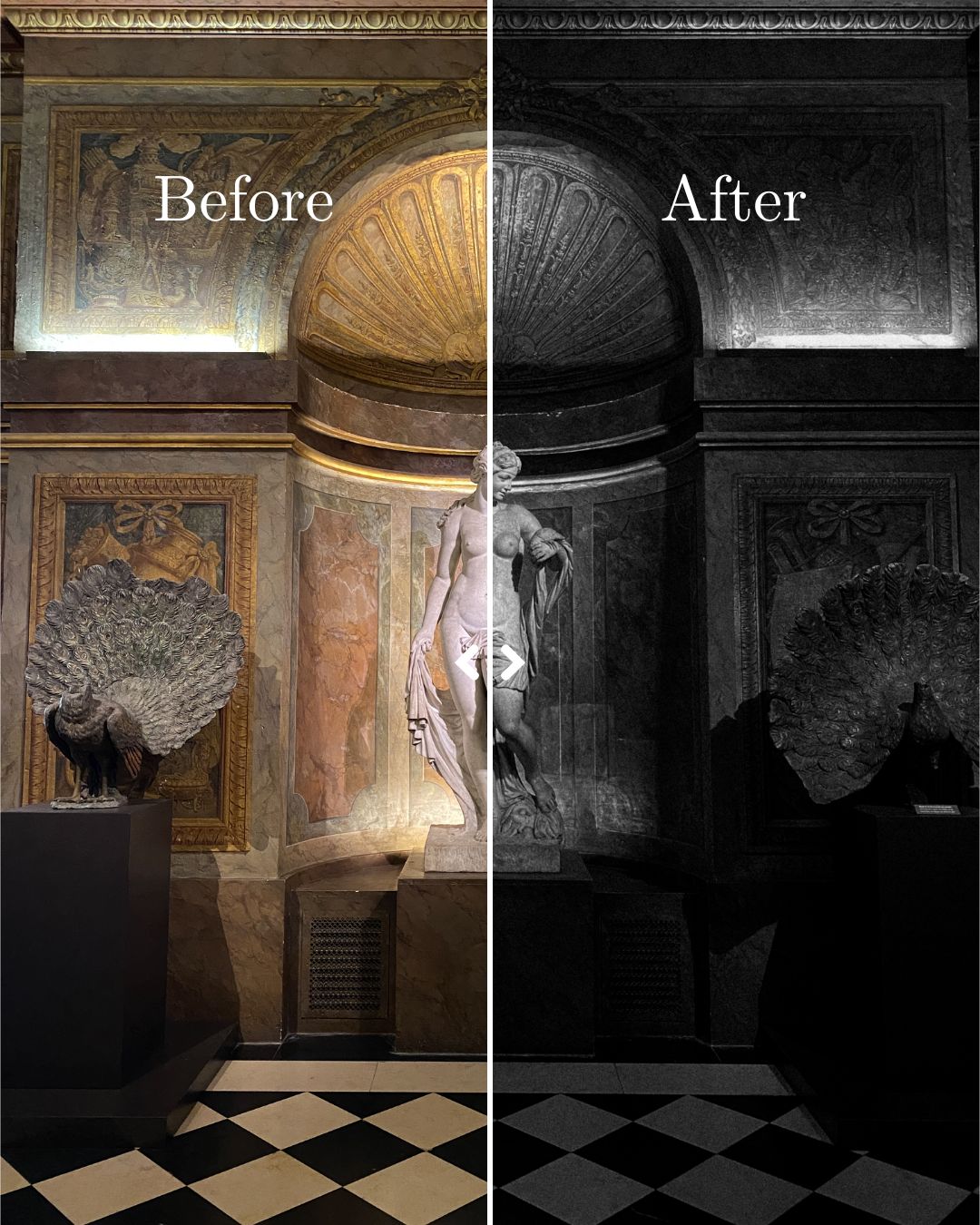 Noir Classic – A true classic black and white look. Easy conversion with clean contrast and balanced tones, designed for effortless edits that always feel polished.